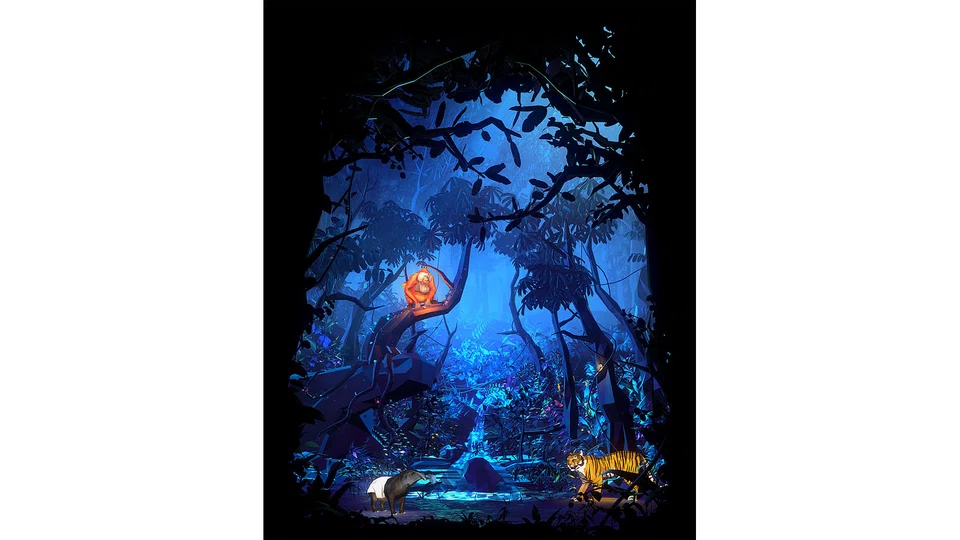 It also brings rainforest conservation issues into the air-conditioned space of Marina Bay Sands. By holding up the smartphone in their walk through the museum's fourth level corridor, viewers encounter a virtual rainforest scene complete with butterflies leading the way and they will see five rainforest animals, like the endangered Sumatran tiger.