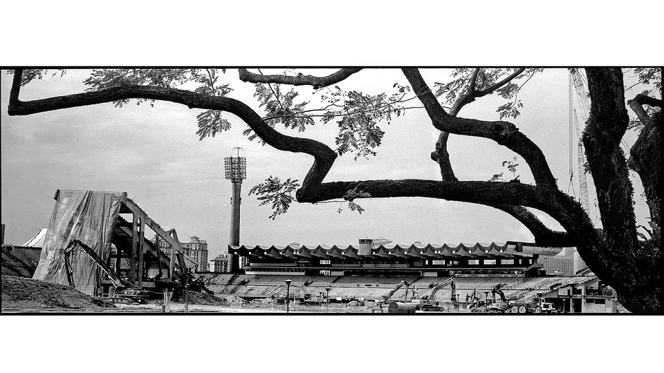In the six weeks before the final KTM pulled out of Tanjong Pagar Railway Station, Mr Wee, with his Hasselblad XPan camera in hand, photographed the station's Art Deco and neoclassical architecture for posterity, along with light-hearted shots of railway employees bantering. His shots of the National Stadium capture the structure being torn down, and its iconic wooden benches.