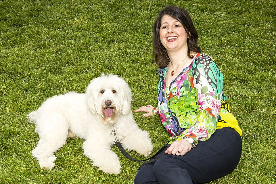 There was her white labradoodle, Benny Hana, pictured in the middle of a party of other dog and human models on a grand staircase.