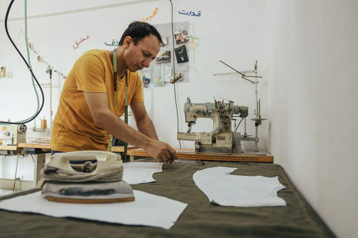 A MAN and his wife – both Afghan refugees living in Malaysia – are each on sewing machines in their home, working on shirts. The tables in the room are strewn with measuring tape, linen and spools of thread.