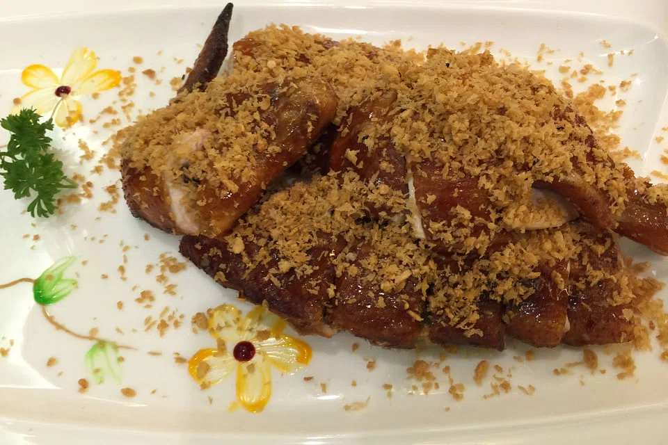 Even if crispy deep-fried chicken (S$38 for half) is a staple at all Chinese restaurants, don't miss Lucky 8's version. Much of the fat beneath the skin has been rendered off in the frying process, leaving it acceptably crisp and layered over meat that's silky smooth from leg to breast. The highlight of this isn't so much the chicken but its twist - a heavy shower of deep fried garlic crisps that cling to the skin like addictive golden floss. The meat itself is barely seasoned, so you can dip it into the unusual yellow salt that comes with it.