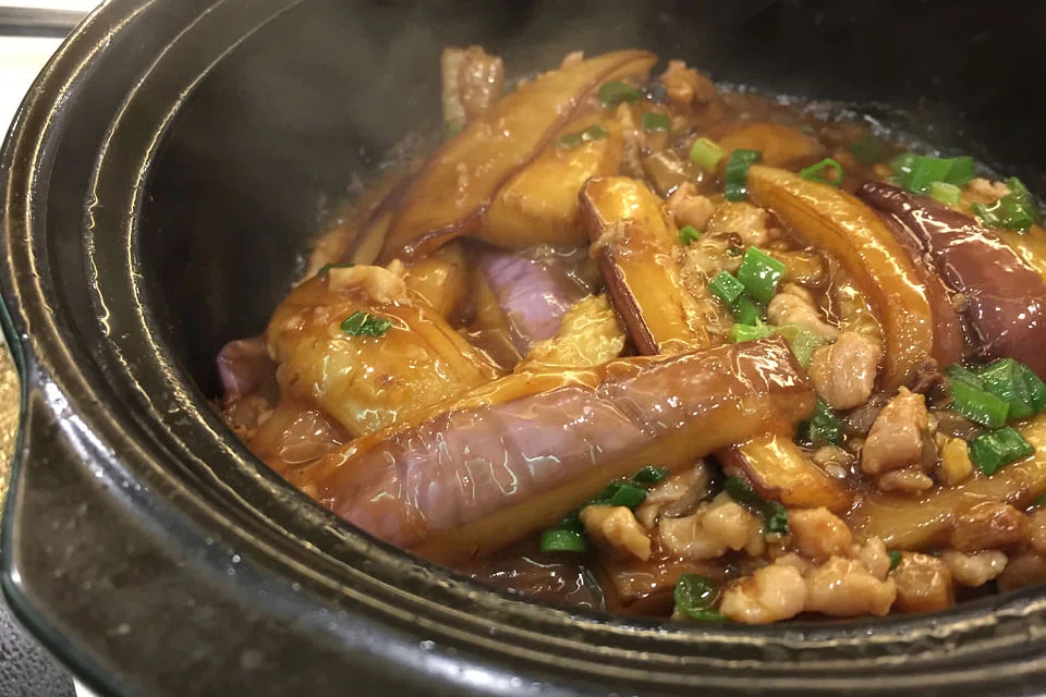 We skip the intriguing but ominous-sounding Chengdu oil-boiled fatty beef in favour of eggplant cooked in a claypot (S$26). It's a good choice, as it comes to the table bubbling furiously and emitting a mouth-watering scent of wok hei and salted fish. The latter adds depth and contrast to the minced meat and slippery-soft eggplant, forming a lovely, sauce-y accompaniment to plain rice.