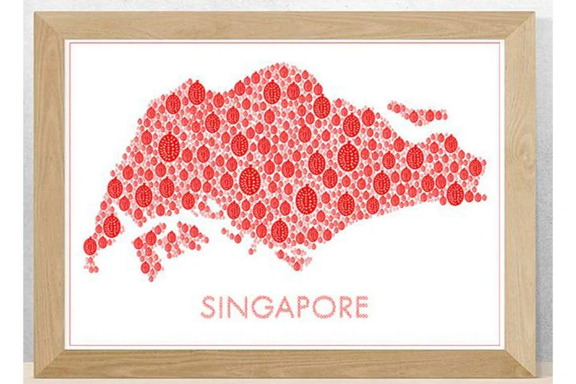 Local design firm Big Red Chilli is known for creating colourful maps of Singapore that will brighten up any bare wall. Even among its eye-catching pieces, the Singapore Durian Map stands out. Not only is it done in national colours, it features bright red durians of all sizes. Just for fun, make it a contest to see who can guess the correct number of durians on the map. The winner gets a durian for himself. Prize not included.