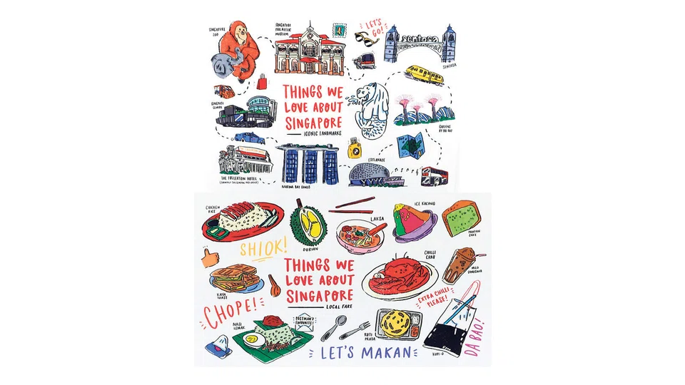 When was the last time you sent a postcard? SingPost has released a collection of three postcards, with cute illustrations of things we love about Singapore. Spot familiar favourites such as the durian, nasi lemak, five stones, the Esplanade and the Merlion.