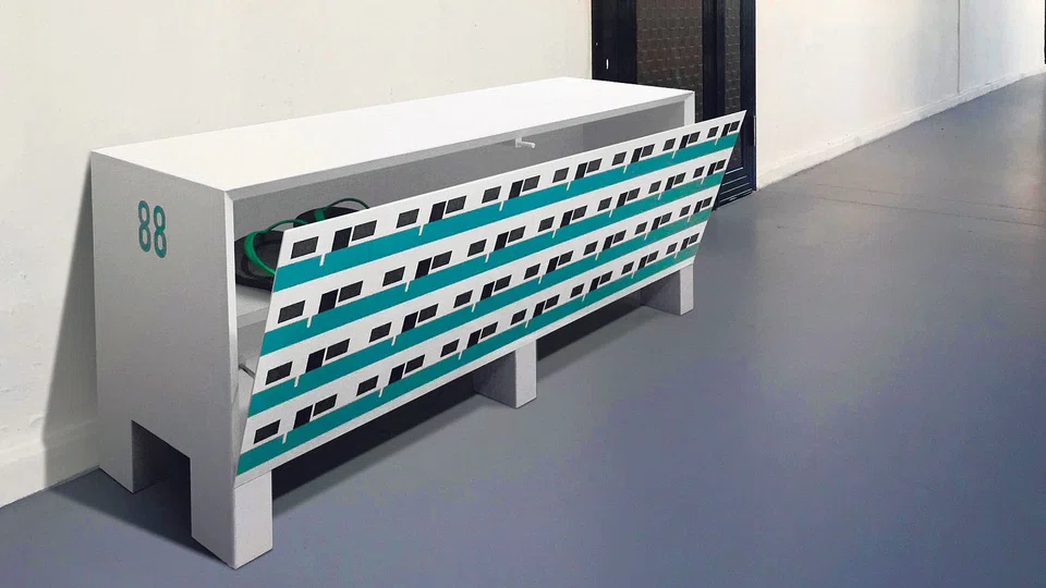 The colourful blocks of flats at Rochor inspired designers from advertising agency DDB Singapore, Joel Chin, Elmy Thong and Neil Johnson, who have designed a shoe rack. Mr Chin says: "This shoe rack was designed to have a distinct Singapore flavour. Also, HDB corridors tend to be cluttered with shoes and makeshift racks. We hope that ours will be used to create a more organised passageway for residents." Every purchase comes with a pack of Singapore flag stickers, which can be used to decorate the shoe rack. Each piece is made-to-order, comes in blue, orange and red and can be customised to include a block and unit number.