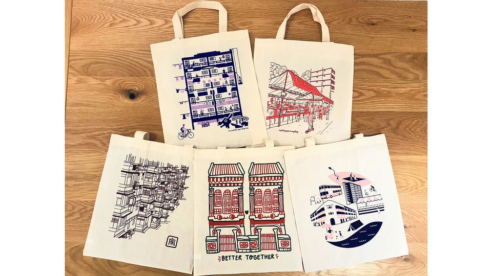 Tote bags and T-shirts, S$28 each, are available from lamppostyle.com.
