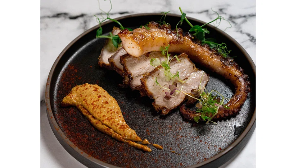 Chef Alonso's version of grilled octopus is part of a mar i muntanya (literally sea and mountain, or surf 'n' turf) combo with thin slices of pork belly (S$28) grilled well enough to earn him some respect at a Korean barbecue joint. He gets the meat crisp and lightly charred and maintains a resilient, juicy bite, while massaging the paprika-dusted octopus into tender submission.