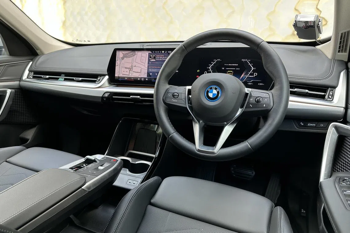Battery power has other benefits, too. The iX1’s air-con runs off the car’s 64.8 kilowatt-hour pack, so a few taps on your smartphone lets you pre-cool the cabin remotely. Or you can just set it to start running as soon as you open a door.
