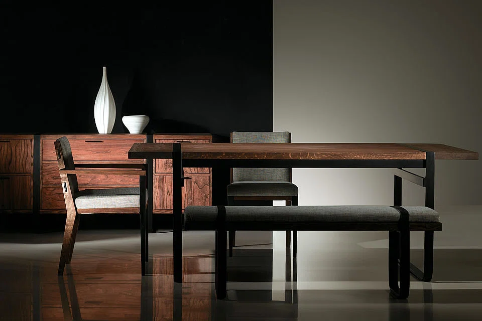 "The industrial chic look which is prevalent in cafes will follow into homes as well. Compared to a cafe, a home needs to feel more warmth, so pieces should be a mix of metal and wood to create a rustic yet contemporary look. Commune's Tusk range is an example, combining powder coated metal with solid oak for its chairs and tables. The bench comes with leather straps to give it a more luxe look."