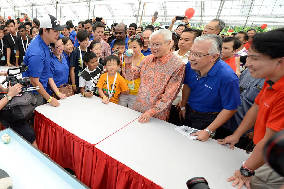 ST Engineering chairman Kwa Chong Seng presented a cheque for S$1 million to President Tony Tan Keng Yam at the ST Engineering 50th Anniversary Family Day, held at the Palawan Green in Sentosa on Tuesday.