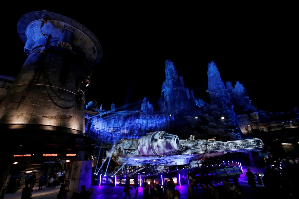 The park features rides, including on the Millennium Falcon, as well as Star Wars characters such as Stormtroopers, the mighty Chewbacca and Rey, a hero of the resistance in the futuristic land of Batuu.