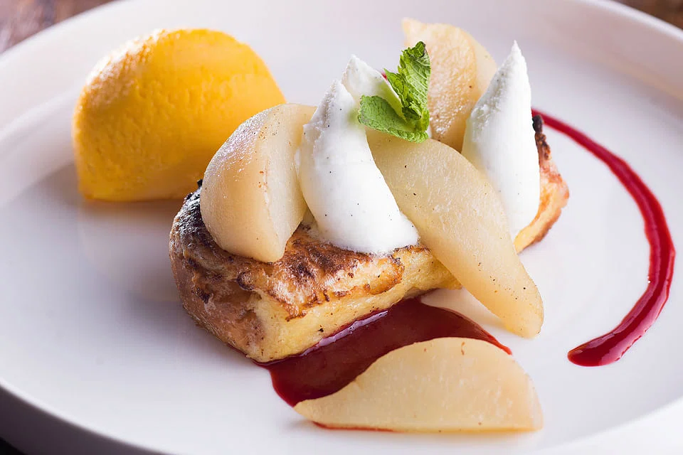 Chocolate fondant inertia sets in with the Molleaux (S$16) - which is more chocolate sauce than cake, served with vanilla ice cream. Our tastes lean more towards the fat fluffy Brioche Perdu (S$16) - French toast with poached pears, mascarpone and an initially incongruous mango sorbet which counters the indulgent toast. OK, we'd still rather have vanilla ice cream.
