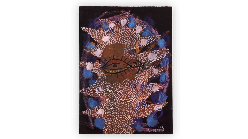 Her own Self Portrait (1952) shows a single eye floating in a biomorph of dots, an allusion to how the mentally-ill artist sees the world.