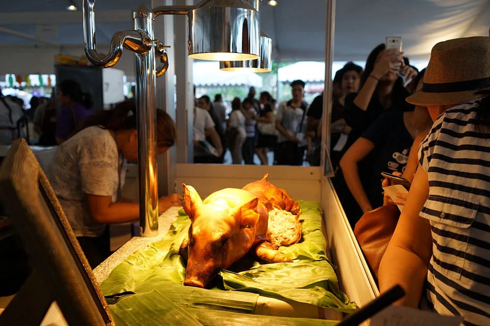 It's the first time Manila has seen international street food vendors flying in for a street food market like this. No wonder Filipinos swarmed the jamboree, buying up almost everything by 9pm. Each stall prepared enough food for 600 people - which meant 100 chickens in braised Zhu Hou style at Fushan master chef Xu Jingye's 102 Private Kitchen stall and nine whole truffle-rice stuffed pigs (spicy paella lechon) by Pepita's Kitchen.