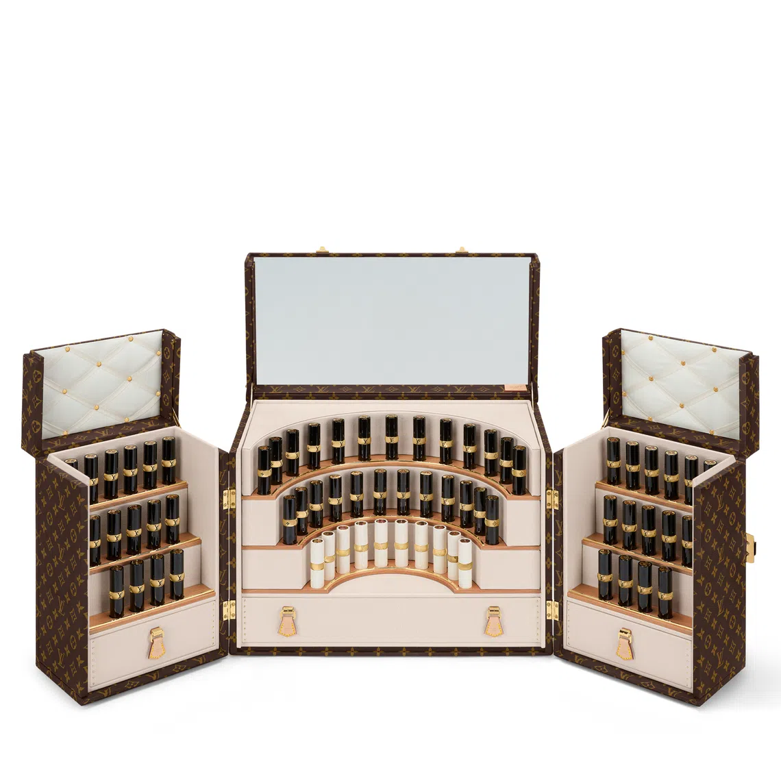 Along with La Beaute’s launch, the maison has created a vanity trunk – a makeup station that “pays homage to both Louis Vuitton’s early 20th-century beauty commissions and McGrath’s modern-day backstage beauty station”.