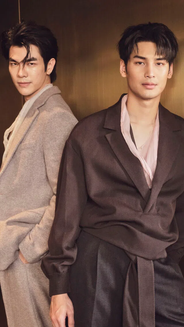 The road to success has been winding for both actors. Though born with the magnetic allure of leading men, they’ve had to work hard to secure roles over countless rivals, as strikingly handsome as they are. Having appeared in smaller parts before, it was the smash success of KinnPorsche – a show that almost didn’t get made because of funding issues – that catapulted them into not just the Thai limelight, but the global stratosphere.