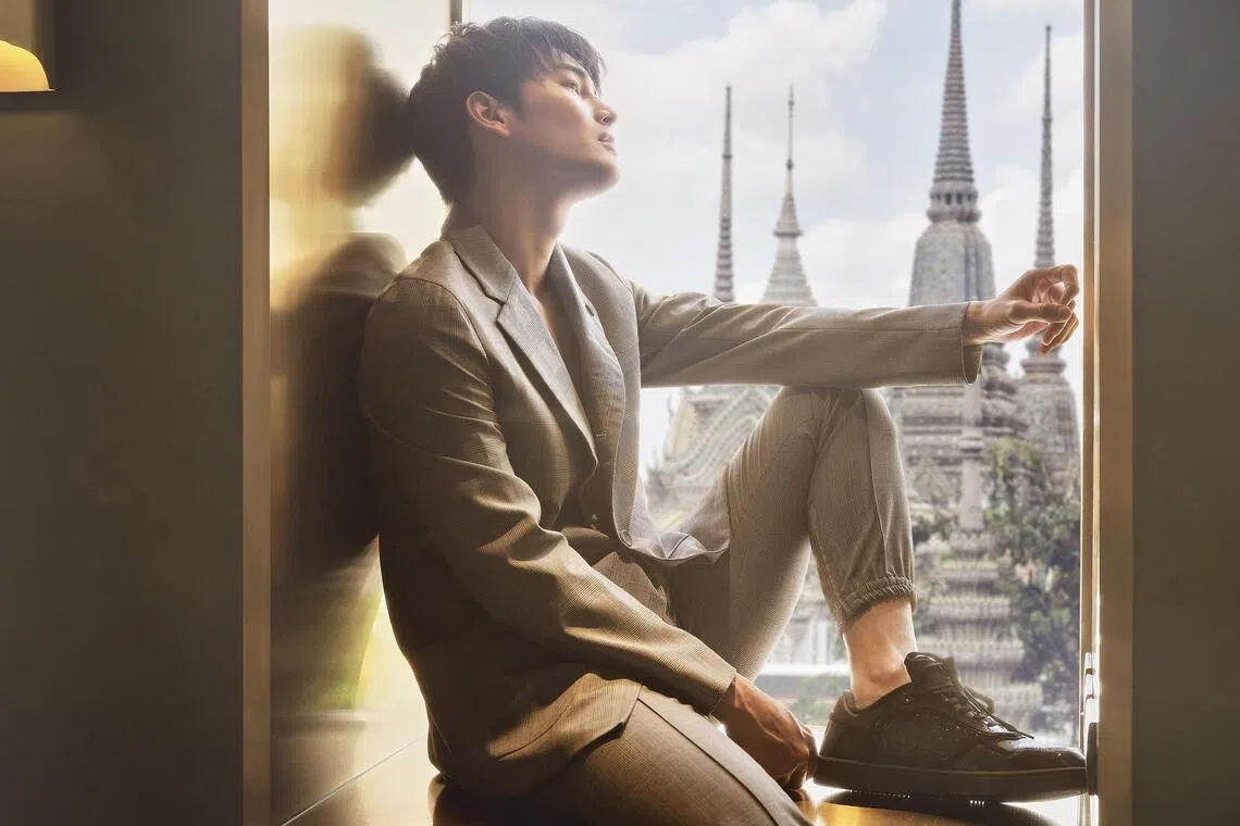 At their photo shoot in Bangkok’s top restaurant Nusara, which overlooks the splendid temple complex Wat Pho, the models-turned-actors are in their element. They tailor their bodies and facial expressions instinctively for the camera, conveying a range of emotions, from sultry and mysterious to bright and playful. The slinky Dior suits, with their clean lines and minimal embellishments, don’t hurt either.
