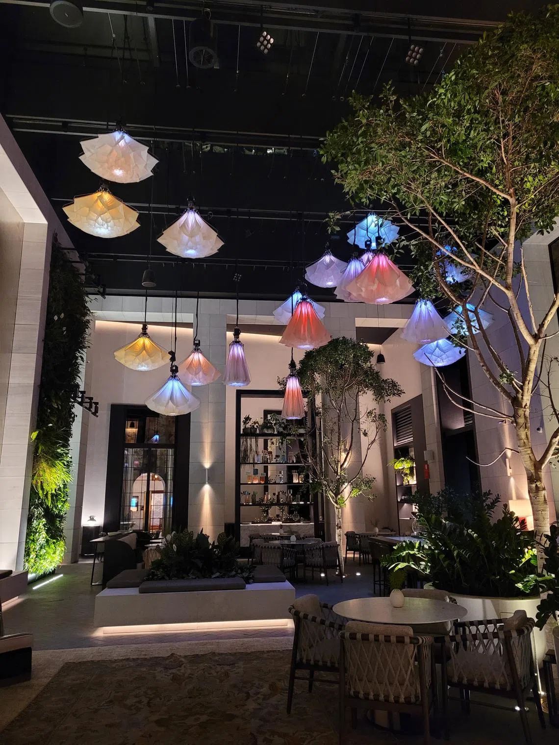 Right after the check-in area is Aperture, the building’s courtyard which now serves as the hotel’s all-day dining and afternoon tea venue. What is fascinating here is its gorgeous set-up that includes a 23-foot green wall of local flora and a mesmerising kinetic hanging light installation of “flowers” that open and close in hypnotic fashion. We could have stood watching all night.