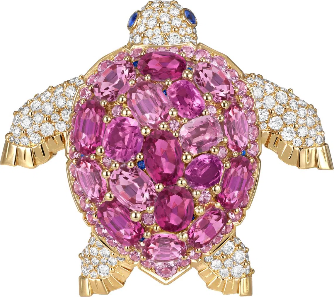 The treasure island theme also provides endless opportunities for Van Cleef & Arpels to incorporate a vast palette of colourful stones. From the ocean’s different tones of blue and the diverse colours of flowers and trees to those of a precious cache, the collection is a celebration of gems in happy hues.