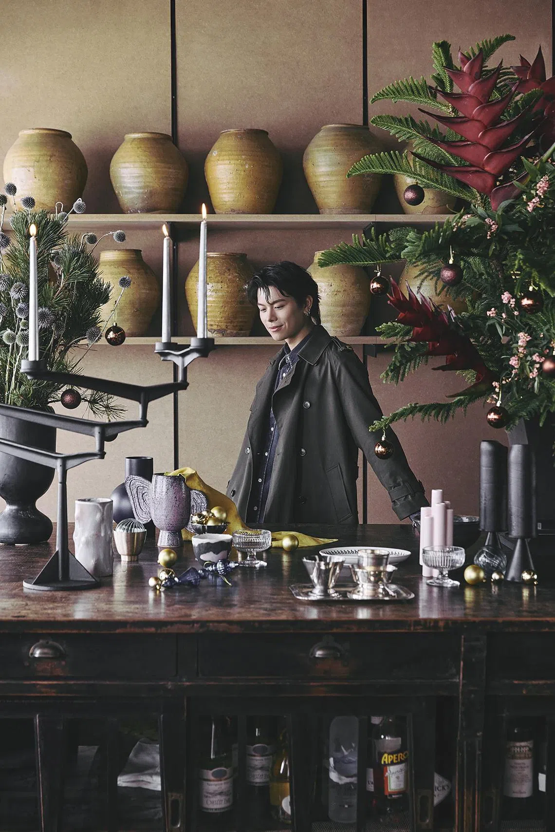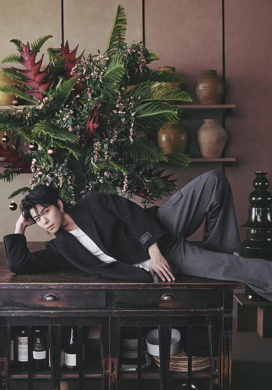 At a photo shoot inside This Humid House, Singapore’s multi-award-winning botanical design studio, Yong moves effortlessly among the avant-garde floral arrangements framing him. Surrounded by sculptural pottery and intricate plant installations, he leans, arches, poses and pouts – his chiselled good looks perfectly complementing the studio’s refined aesthetic.