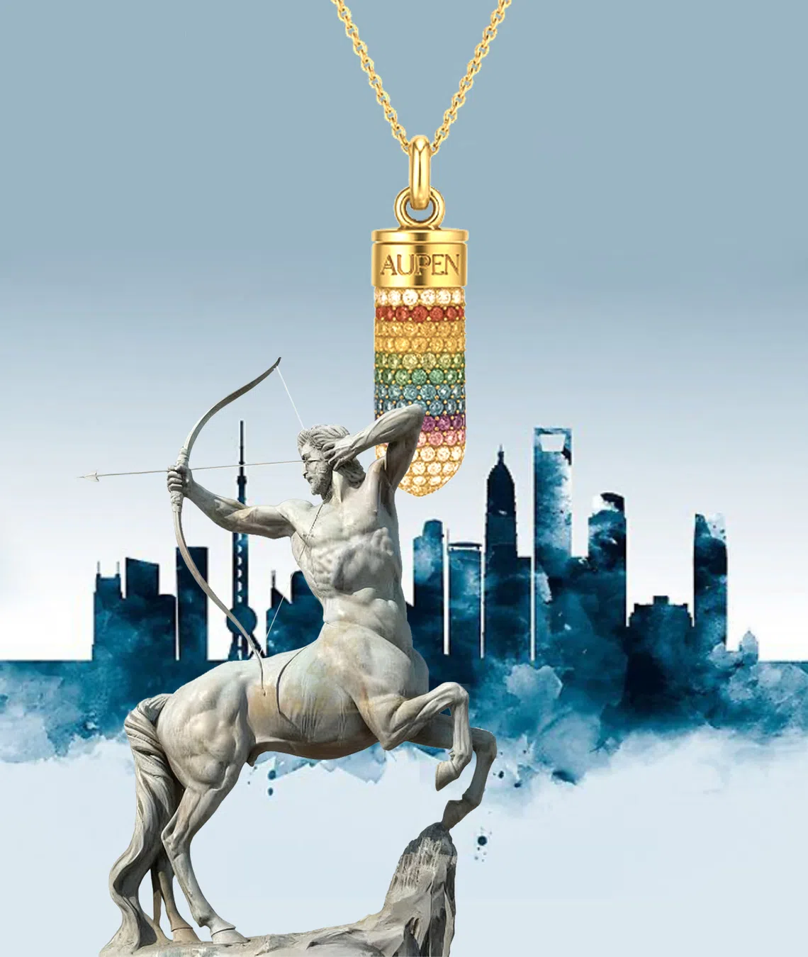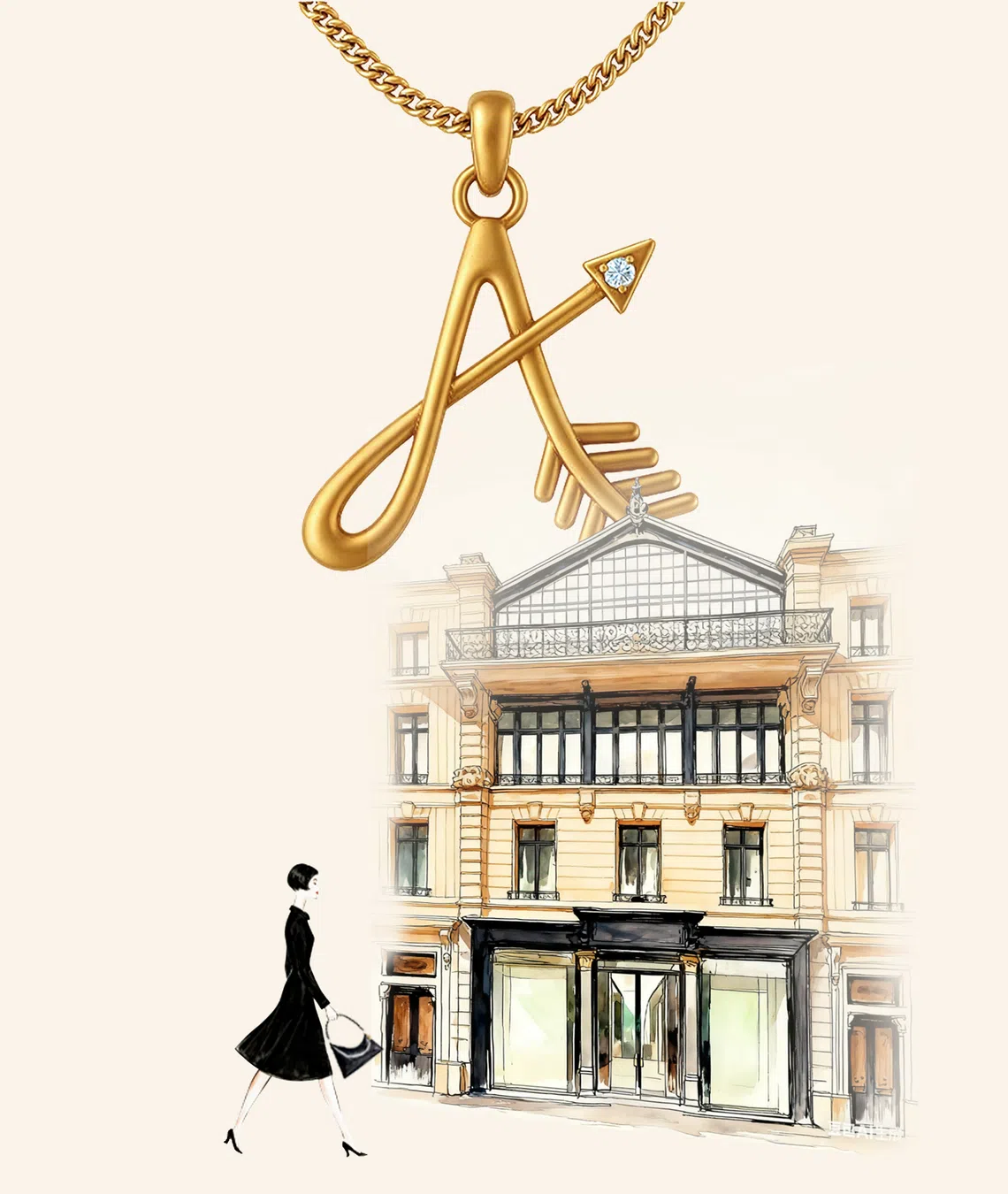 The pendant embodies the goddess of war and is a statement of inner strength, with an arrow symbolising courage and the wisdom to prevail through clarity and conviction.