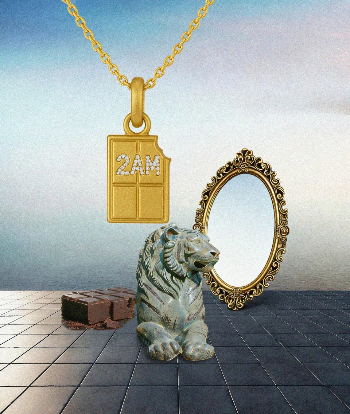 Tan, a Harvard graduate, turns to address his long nights of study in the university library with Veritas – latin for “truth” and the official motto of the Ivy League school. The shield-shaped pendant evokes his regret of intellectualising too much, as well as the promise to live in the present moment.