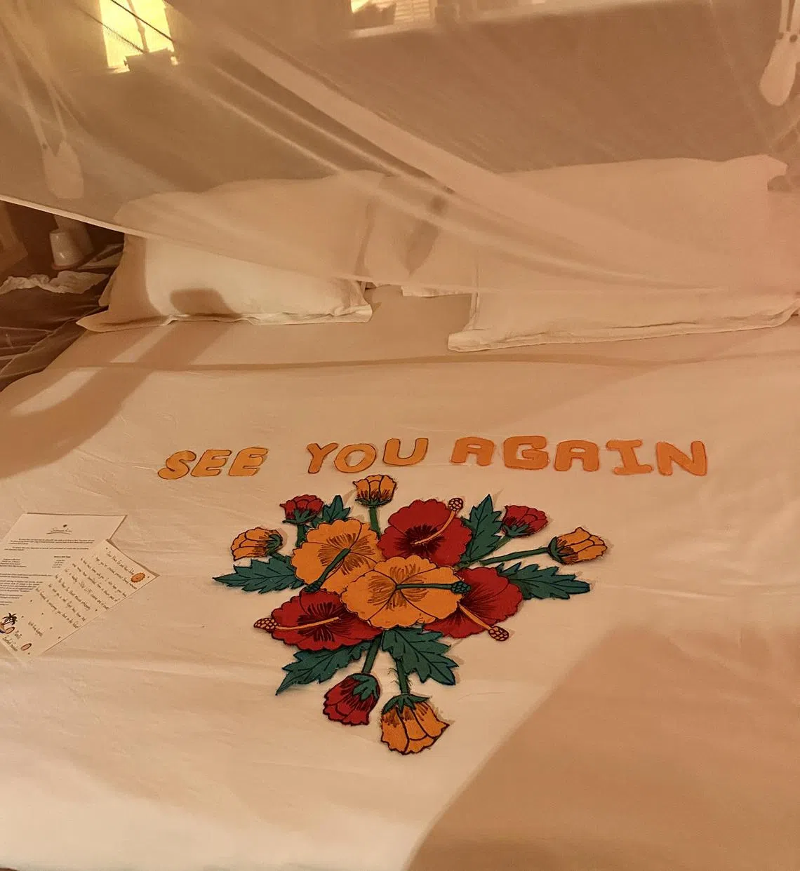 You only realise how much of an effect Soneva Kiri has had on you on your last night, when the staff meticulously arrange fabric floral decals into a whimsical bouquet on your bedspread with the words “See you again”, and a heartfelt note from our barefoot guide Meenie.