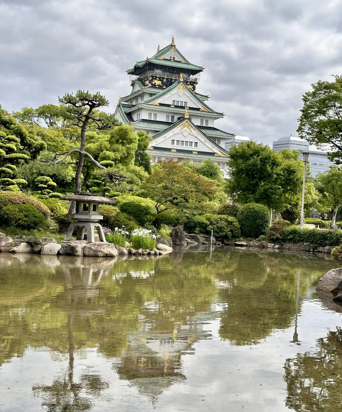 With a – yes – running commentary courtesy of Finch, you pick up little nuggets of information about Osaka on your way to the castle. There’s a useful tip about a little shop not far from the hotel that sells lots of well-priced wine. A short commentary about the art museums in the area. And how the rose plants at Nakanoshima Park – the city’s oldest – range in age from a few years to almost 100 years old. And of course, the best view – a beautiful tranquil lake with the ancient monument looming in the background.