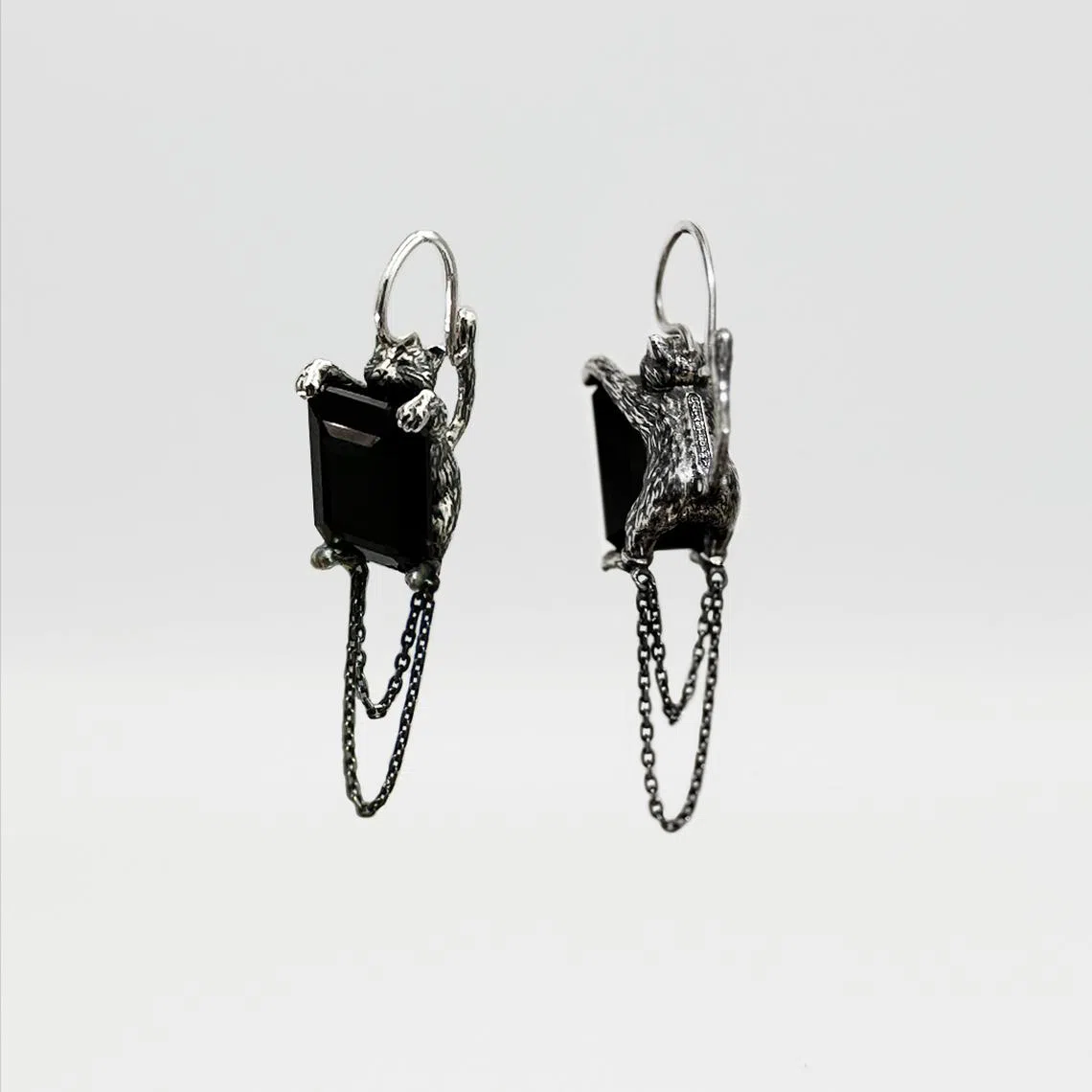 The handcrafted jewellery collection symbolising the bond between humans and their feline companions ranges from rings and earrings to cuff bracelets and necklaces with locket pendants. Cat details can be very discreet – appearing as paw-shaped claws or cat nose clasps, alongside rock ‘n’ roll elements such as studs, chains and black onyx.