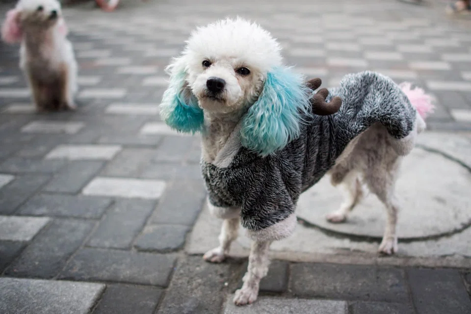 "Pet owners like to dress up their pets, the way they would their own children," said a woman surnamed Huang as she walked her two fluffy brown poodles, one with a pink bowtie and the other wearing a blue one, through a central Shanghai neighbourhood.
