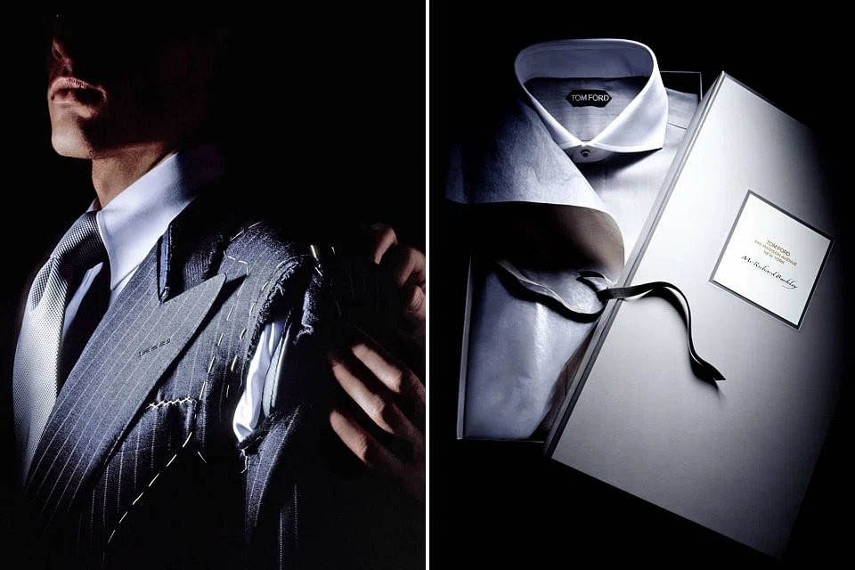 Though the label is helmed by American fashion designer and filmmaker Tom Ford, its bespoke clothing is tailored in Europe. Hand-selected wool is spun into yarn on 18th-century English machines, wool-silk and wool-cashmere blends are made in Northern Italy, and the cloths are cut and sewn in small artisan factories located in Biella, Novara and Padova, also in Italy.