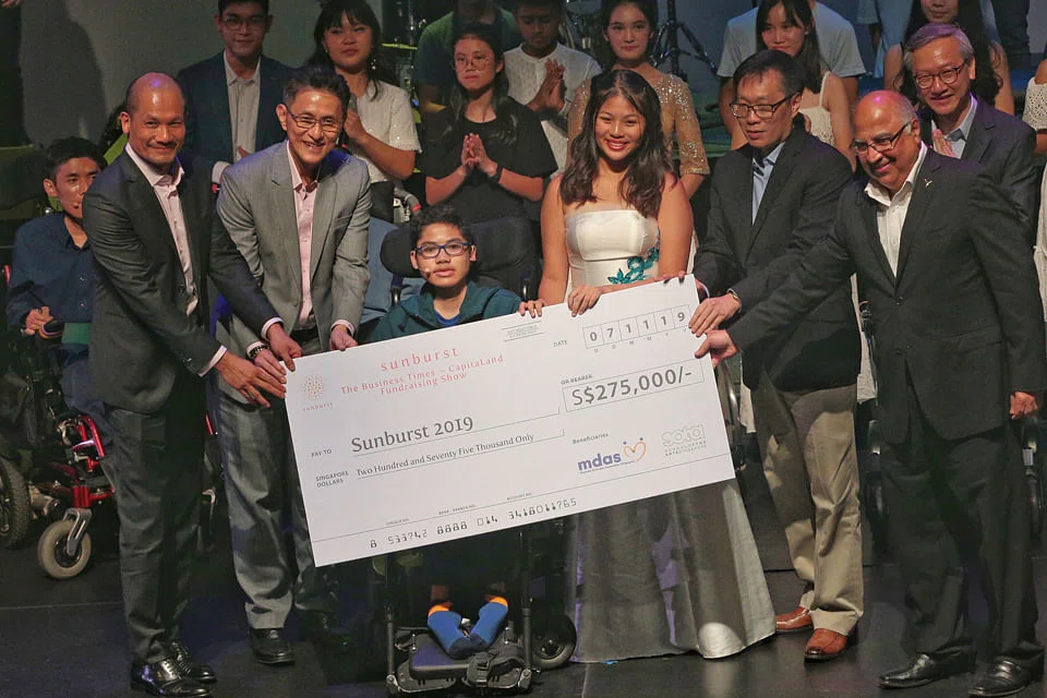 In its third edition, Sunburst: The Business Times-CapitaLand Fundraising Show was organised by The Business Times (BT) and presented by CapitaLand to raise money for people with muscular dystrophy and for financially disadvantaged arts students.