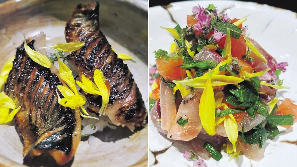 Of course, his career path has been different from his ancestors. He arrived in Singapore two-and-a-half years ago to work at Kappo Shunsui - a position that he found over the Internet when he was still based in Tokyo. He already had an impressive resume at the time, having been the second in command at the three Michelinstarred restaurant Ishikawa from 2010 to 2014, where he picked up everything from "cooking knowledge, kitchen management and the importance of service". Adds Chef Nishi, "I owe my style of cooking to Chef Ishikawa as well as what I picked up from dining at other restaurants.