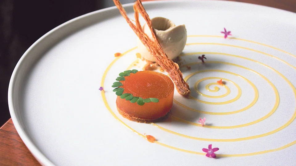 Despite having no formal culinary training (she studied commerce in university), Chef Ngooi was taken under the wing of awardwinning pastry chef Cheryl Koh of the three Michelin-starred Les Amis, where she was part of the opening team for the pastry shop Tarte. She went on to Australia to stage at restaurants such as Brae, and returned to work at the now defunct Joel Robuchon restaurant in Sentosa for two years, where she met Chef Massot. She continued to make an impression with her meticulously plated desserts at Vianney Massot until her resignation.