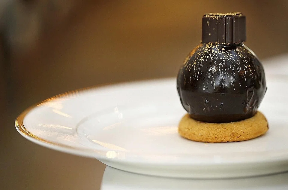 There's the Passionne, a very light passion fruit cheese cake, and the San Domingue, shaped in a ball topped with a dainty chocolate box. This cake is made of mousse made from 70 per cent single origin chocolate, with caramelised plantain, vanilla cream and a crunchy base made from butter from Brittany.