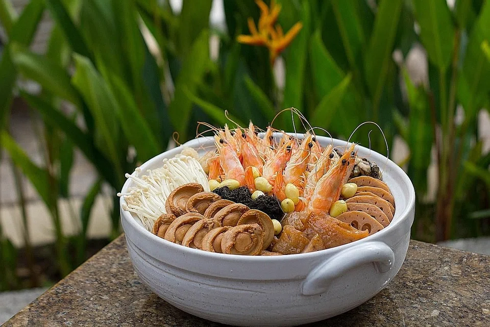 Cut away the bread to get the succulent chicken which comes stuffed with sea cucumber, pork belly, mushroom, dried scallop and abalone. The Baked Buddha Jump Over the Wall is priced at S$128.