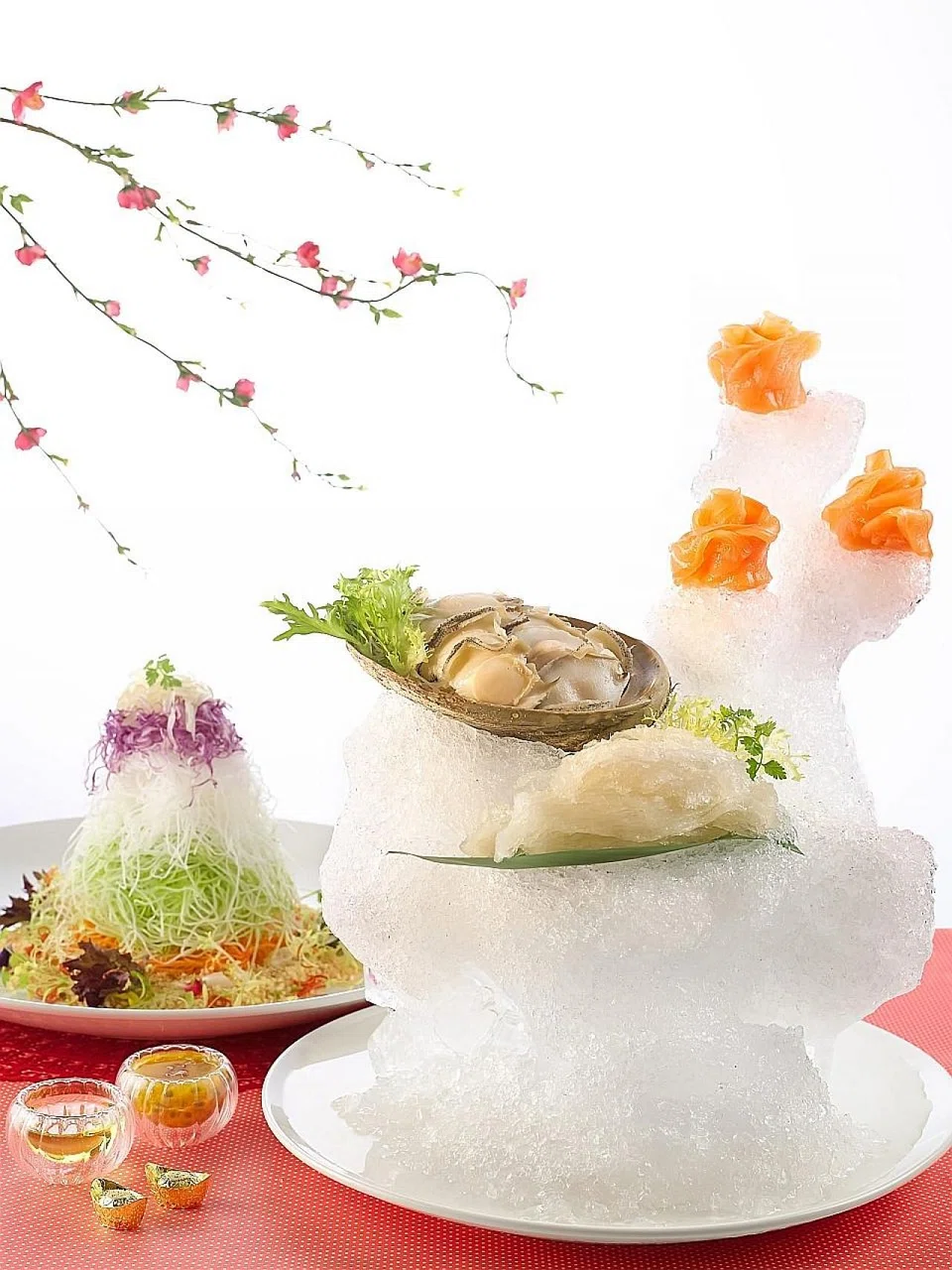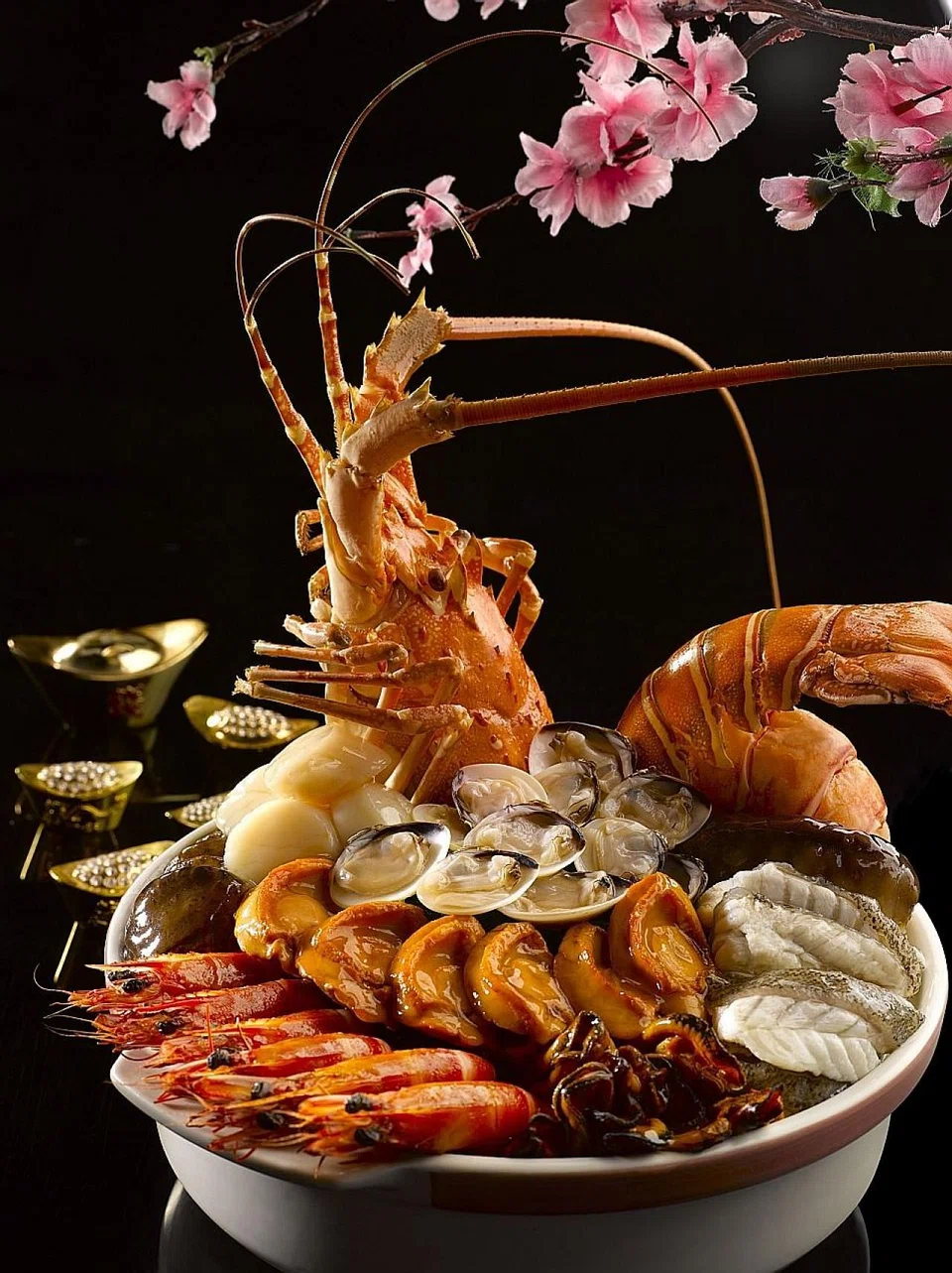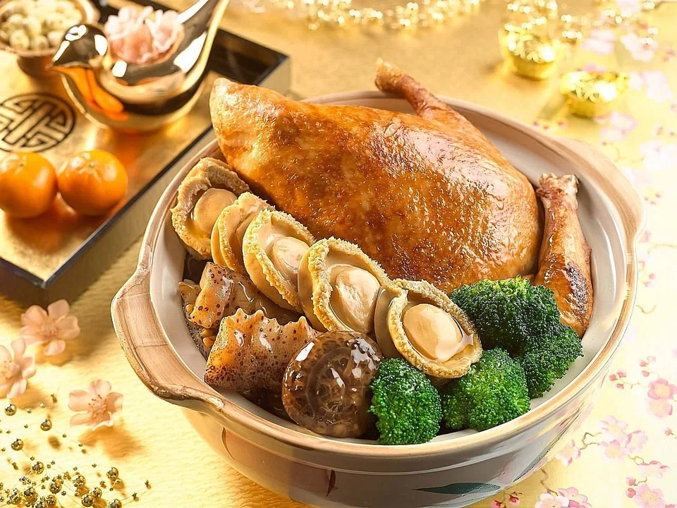 Xin Cuisine's yusheng ($63 to $98) is a refreshing way to start the new year with its sweet passionfruit sauce to go with either Japanese prawns or salmon. For a more luxurious meal, order the imperial pen cai ($999 for 10 persons) and get premium items like a whole Australian 3-head abalone, bird's nest, deer tendon, goose web and Mexico sea cucumber. Also available is their crispy-skinned roasted suckling pig ($298) and an eight-treasures duck ($198) which is stuffed with ingredients like fish maw, whole abalone, sea cucumber, sea whelk.