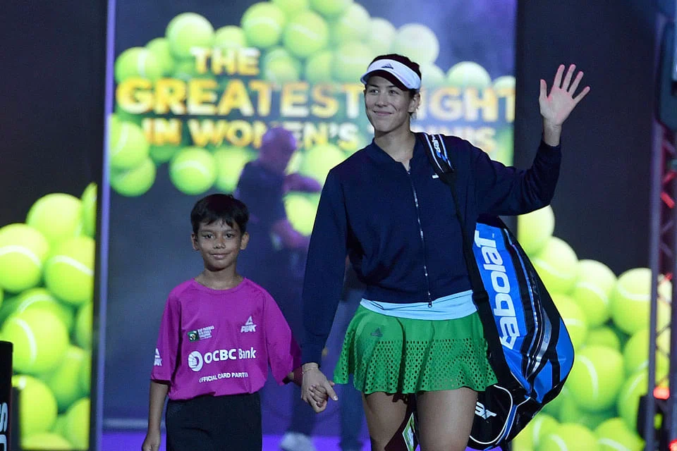 The children were part of the OCBC Kids Walk-on Programme, who were picked to escort superstar athletes such as last year's WTA Finals winner Agnieszka Radwanska and the current French Open champion Garbine Muguruza.