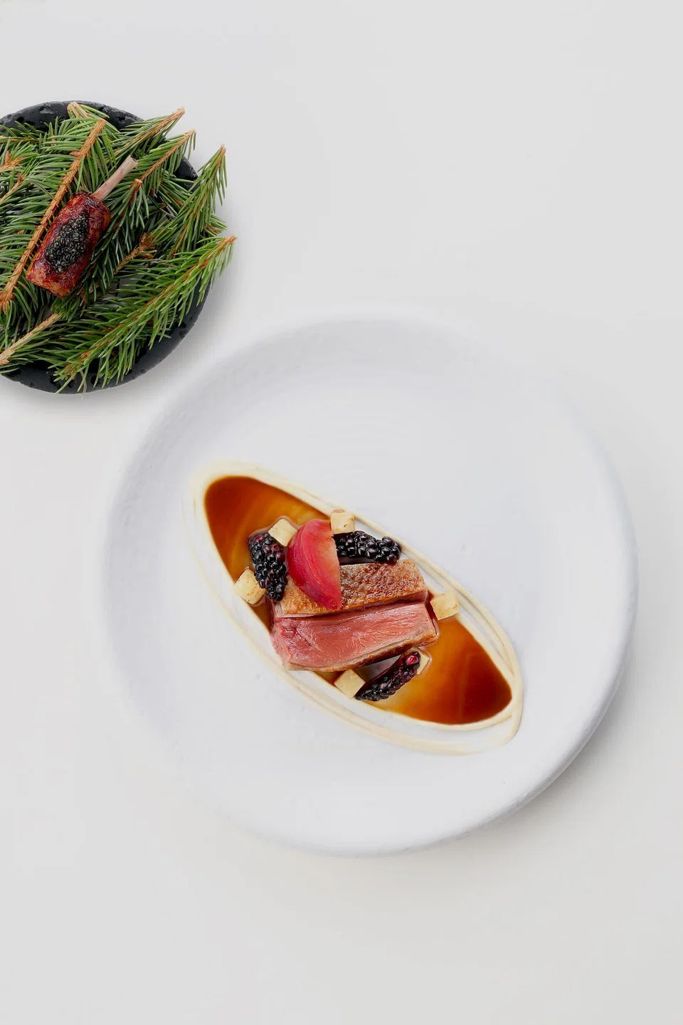 For the bread course, what could be heavenly coils of a savoury Babka-like bun made with beef tallow and herbs starts with a perfectly brown crust but peels away into a dense, underbaked dampness within. A simple white roll beside it fares better.