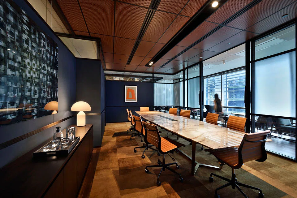 The 15,000 square foot Grade A office space was designed by hospitality specialist Distillery Studio, who also designed Manhattan Bar at the Regent Hotel. "We specifically wanted the design to be led by a hotel designer, not an office designer," says Ms Ang, who previously worked in the hospitality industry.