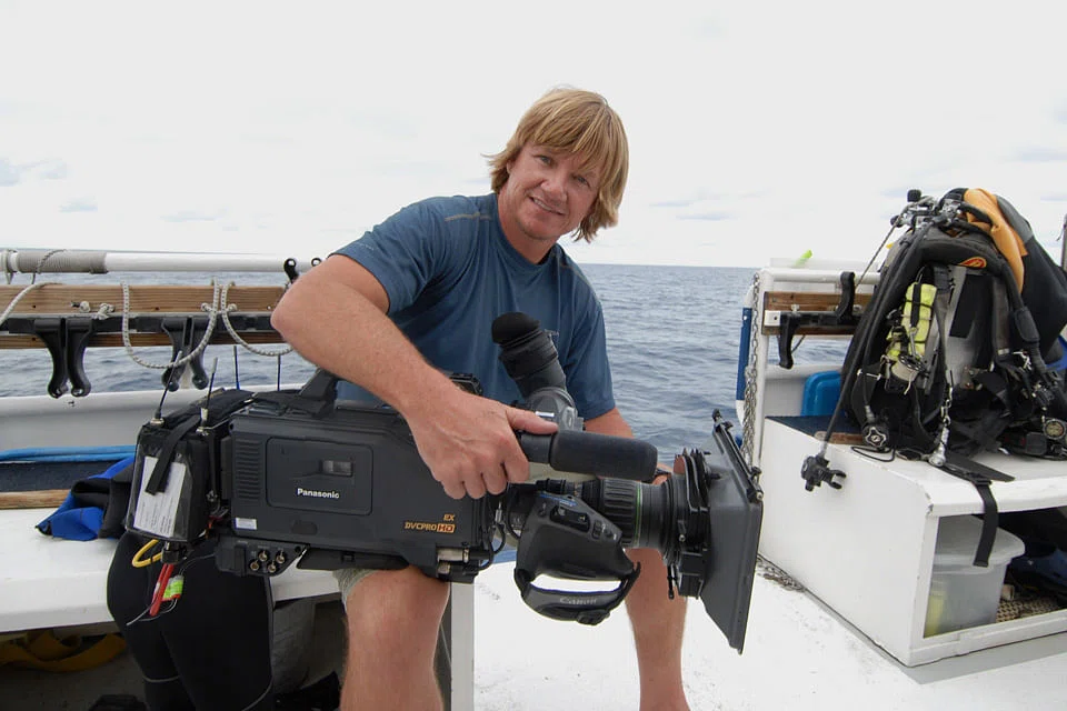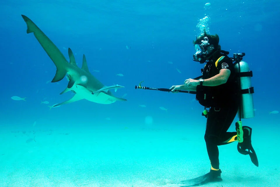 Casagrande's goal in filming sharks is to refute the image of them as blood-thirsty man-eaters, a reputation that has been reinforced by classic Hollywood films such as Jaws and by media reports of shark fatalities.