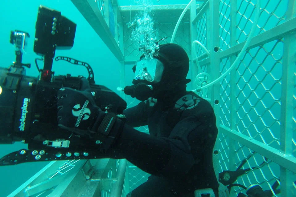 "PLAN for the worst but hope for the best" - that is the mantra of wildlife cameraman Andy Casagrande, who regularly dives alongside one of the world's most dangerous predators, the Great White Shark. Although the 38-year-old has been seen facing off sharks for the last 15 years, the worst - touch wood - has never happened. "I have never had a situation when I thought I was going to die," he says. "Even though I had Great Whites chase me and bite my camera."