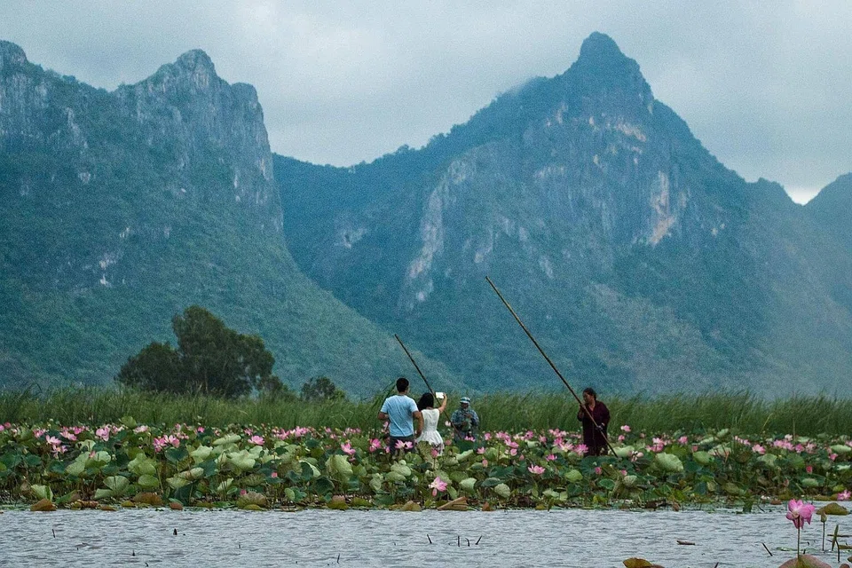 The flowers, considered sacred in Thai culture, are good news for locals who have been ferrying camera-toting visitors through the lotuses which lie in knots on the lake's vast waters.