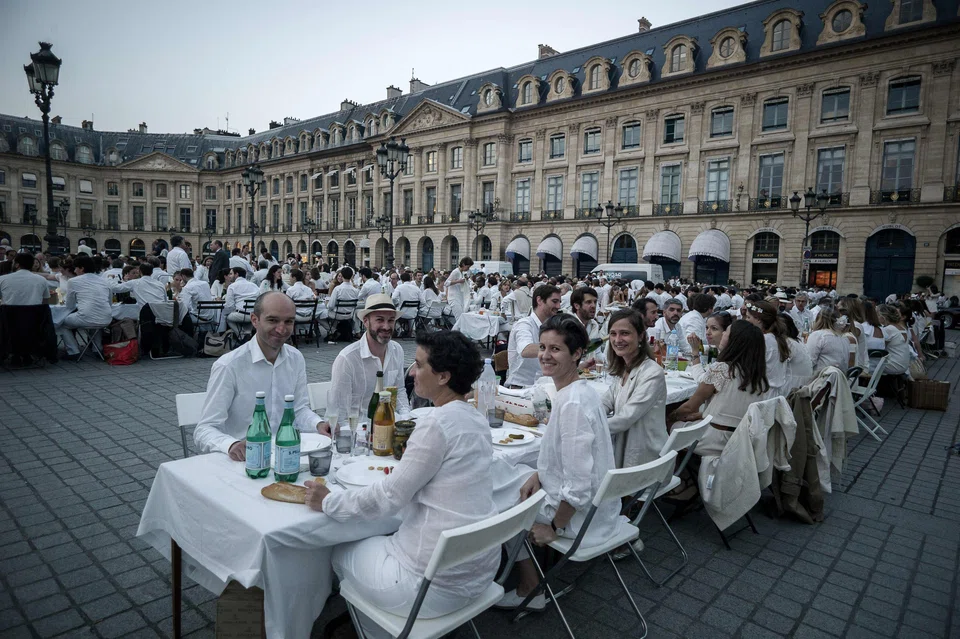 The latest "Diner en Blanc" (Dinner in White) took place in Paris Wednesday when some 7,000 people dressed in white from head to toe descended on the swanky Place Vendome to dine al fresco on fine food and wine in the heart of the capital's luxury district.