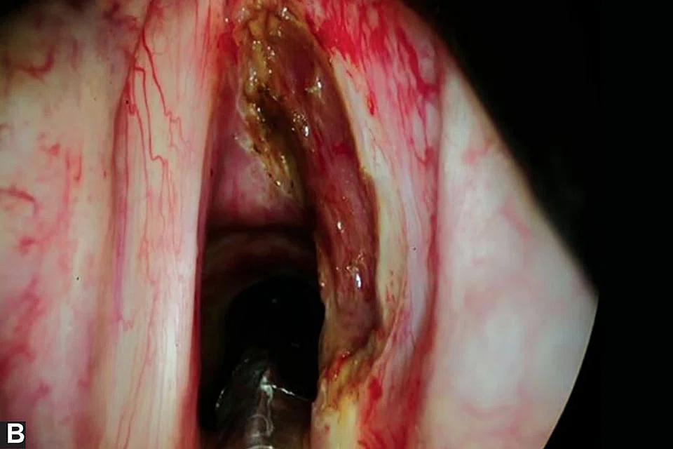 A full history is sought and risk factors ascertained. The state of the patient is appraised to assess the severity of the disease, especially in cases where the airway is either compromised physically, potentially leading to asphyxia, or in its inability to protect the lungs from aspiration of ingested solids and liquids. Thereafter, patients are examined with particular attention paid to their larynx, back of the tongue and side of their throats. This is achieved using a flexible fiberoptic endoscope known as a nasendoscope which is passed via the nostril, through the nose and above the voice box.