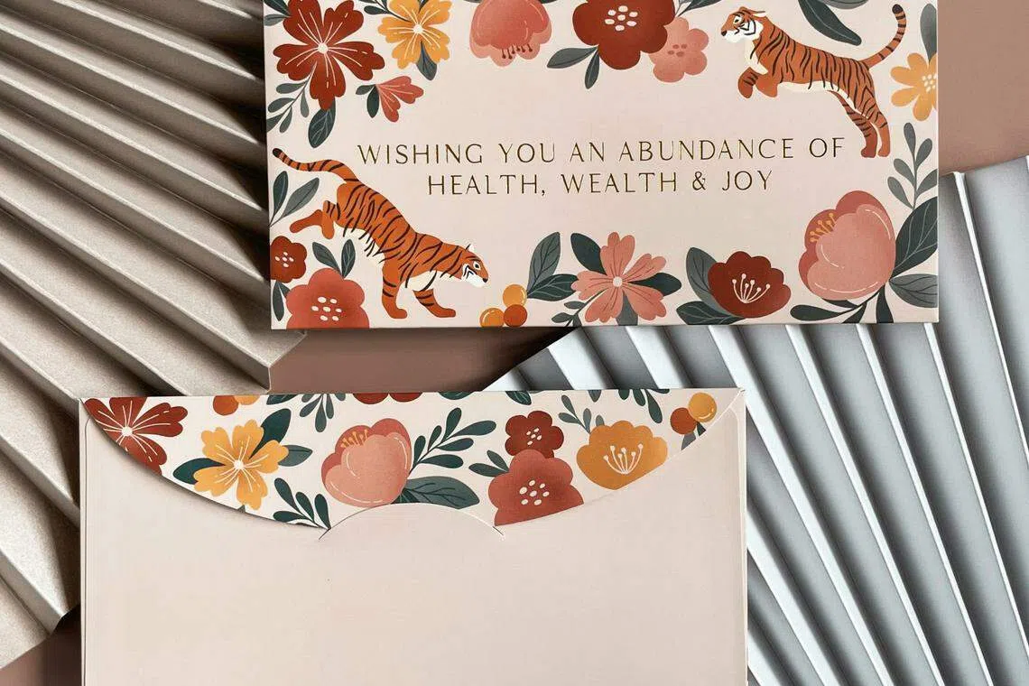 Homegrown stationery brand, Papercranes Design turns traditional red packets into works of art that you might not want to give away. Founder and designer Aerilynn Tan has ang baos that come adorned with lively tigers prancing amongst lush florals and a festive greeting.