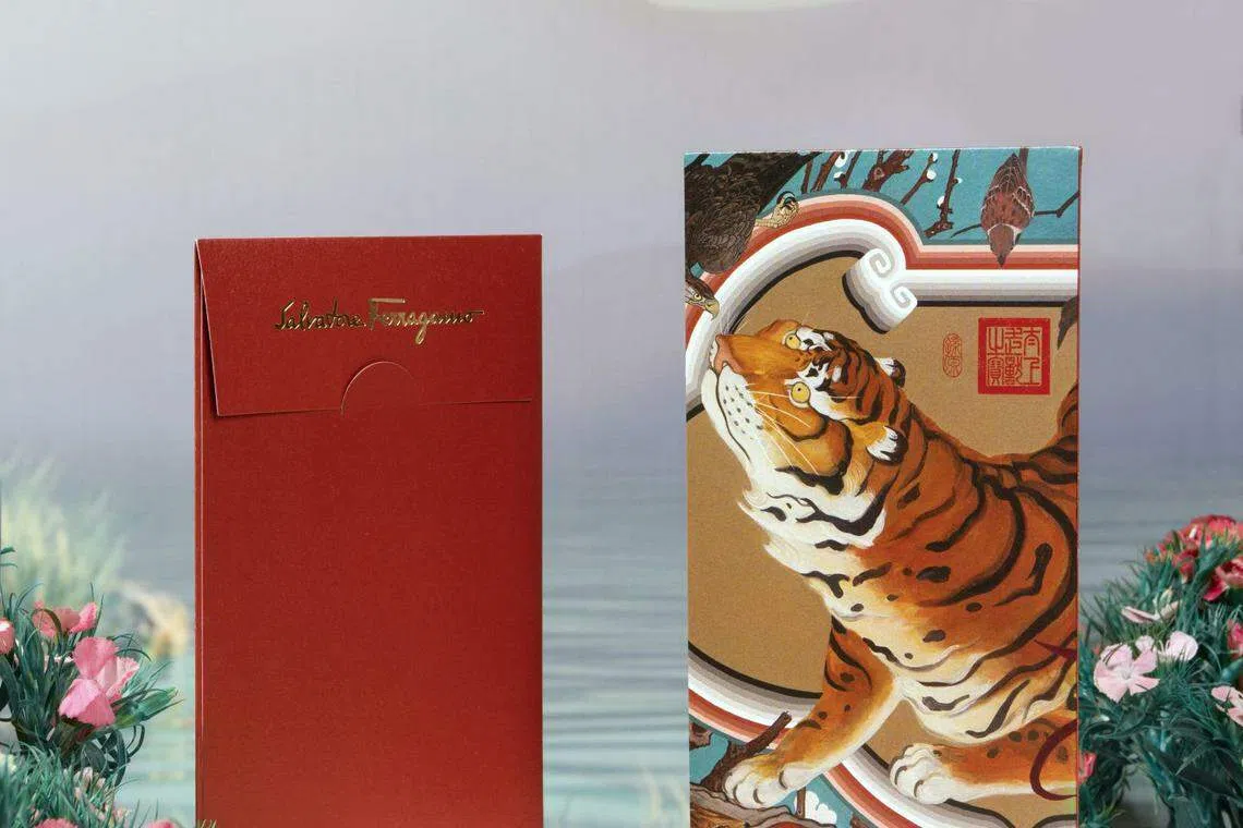 For the year of the tiger, Salvatore Ferragamo invited Chinese artists Sun Yuan and Peng Yu to create a print featuring the tiger which symbolises bravery, passion and safety. Besides red packets, this same tiger is also on its fine silk foulard.