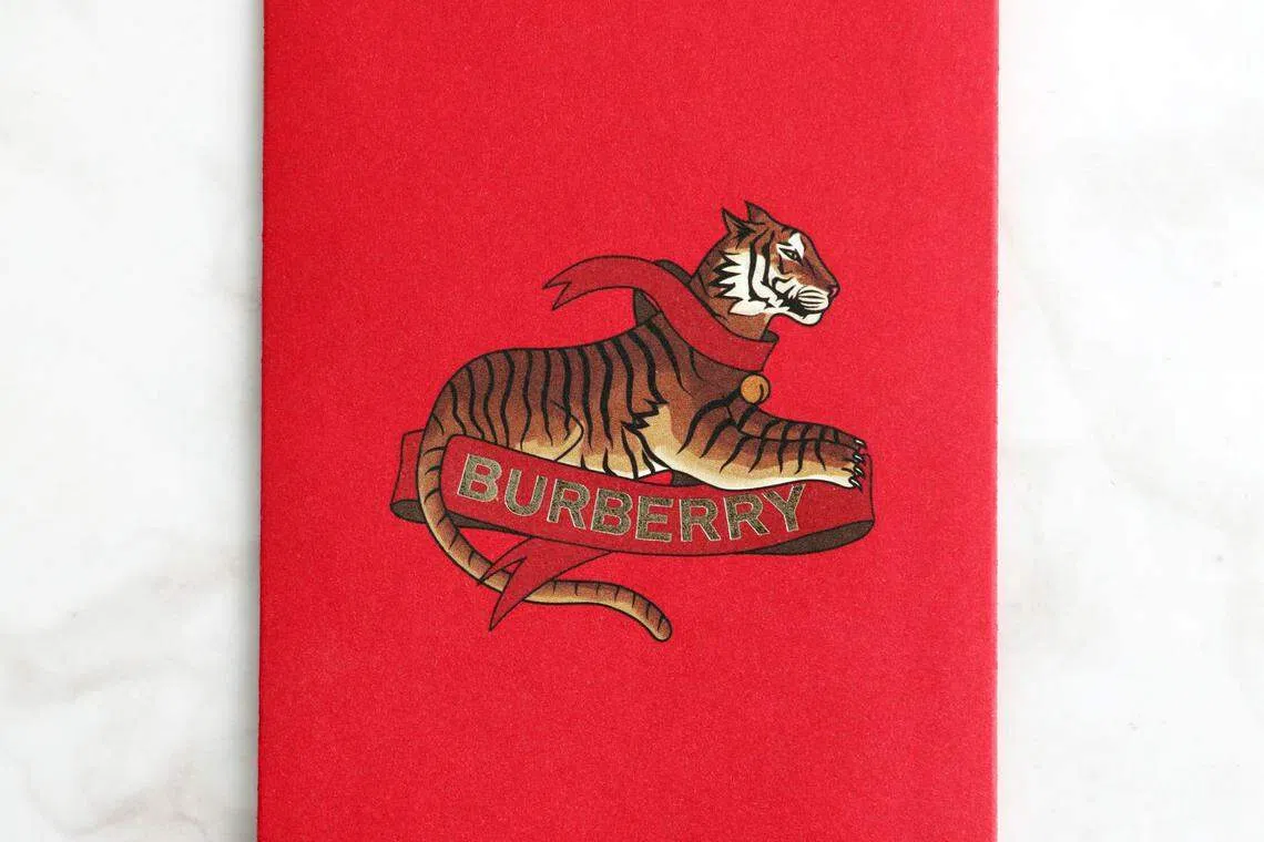 Fashion label Burberry's red packet features the majestic tiger sitting with its front paws out and with a red scarf on its neck. The same print can also be found on its Year of the Tiger apparel collection which includes shirts, dresses and sweaters.