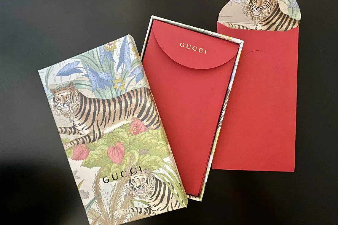 The Gucci Tiger collection is the fashion brand's nod to the zodiac animal, with a line of ready-to-wear and accessories based on a 60s illustration by artist Vittorio Accornero and reinterpreted by creative director Alessandro Michele. Make your own ang bao fashion statement with these printed red packets that are understated on the outside but open up to reveal the tiger in all its elaborate glory. There's a strong chance these ang baos will be coveted more than what's inside.