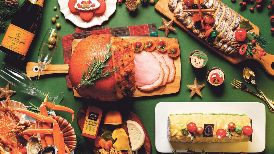 Add a heritage twist to your Christmas dinner at home with a range of locally-inspired creations at Pacific Marketplace. Chefs at the Pan Pacific Singapore have perfected the Peranakan roasted turkey (S$168) marinating it with Asian spices and complementing it with nasi kunyit (turmeric rice). For traditional palates, there's also smoked Gammon ham (S$158) and pastrami-crusted beef striploin (S$158). Round off the meal with chendol log cake (S$68) which layers pandan sponge with gula melaka mousse, adzuki beans and coconut panna cotta, or chocolate matcha cherry Morello log cake (S$68).